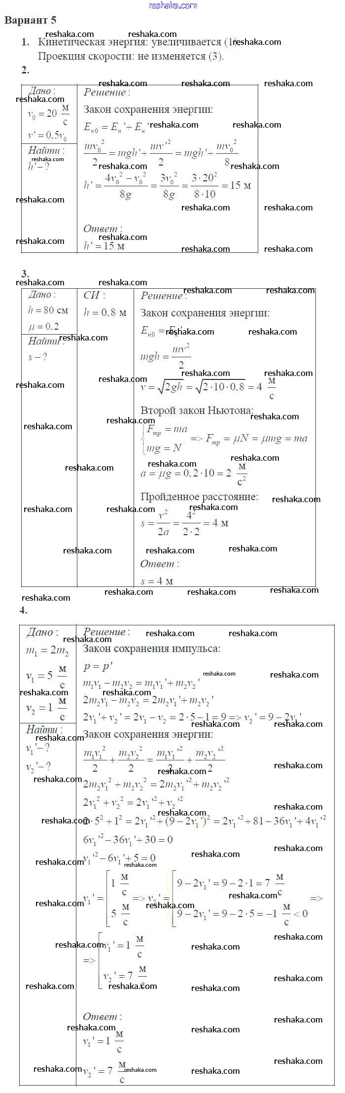 Решака - онлайн ответы Физика Ерюткин, Ерюткина за 10 класс Самостоятельные и контрольные работы Базовый и углубленный уровень ФГОС 2018 - 5