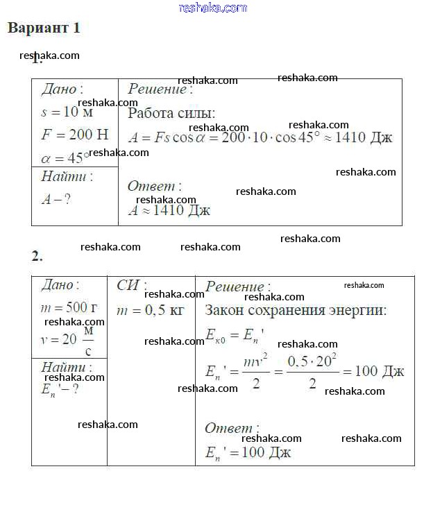 Решака - онлайн ответы Физика Ерюткин, Ерюткина за 10 класс Самостоятельные и контрольные работы Базовый и углубленный уровень ФГОС 2018 - 1