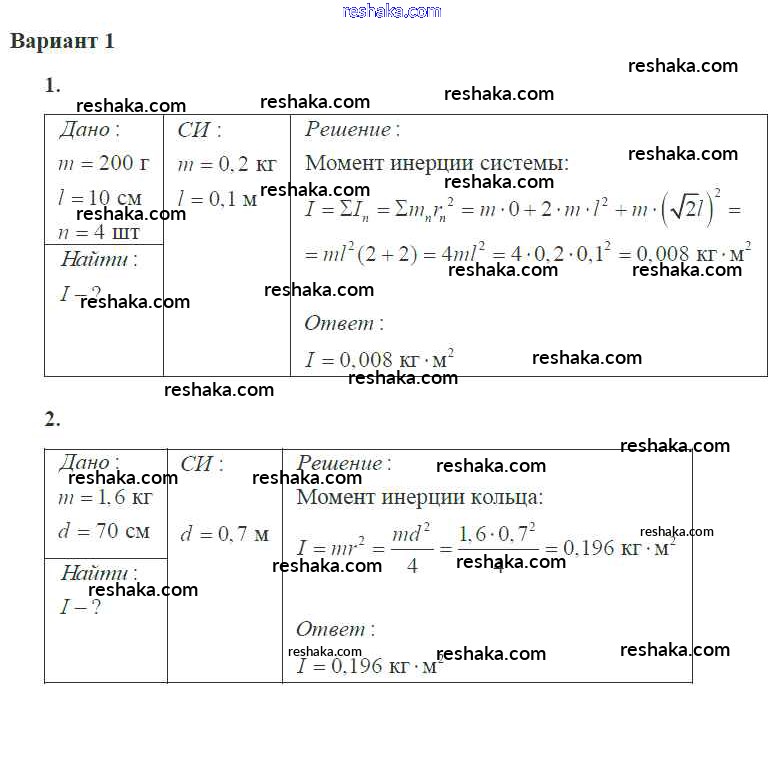 Решака - онлайн ответы Физика Ерюткин, Ерюткина за 10 класс Самостоятельные и контрольные работы Базовый и углубленный уровень ФГОС 2018 - 1