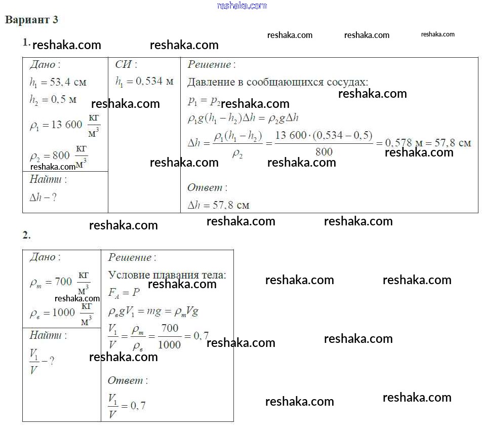 Решака - онлайн ответы Физика Ерюткин, Ерюткина за 10 класс Самостоятельные и контрольные работы Базовый и углубленный уровень ФГОС 2018 - 3