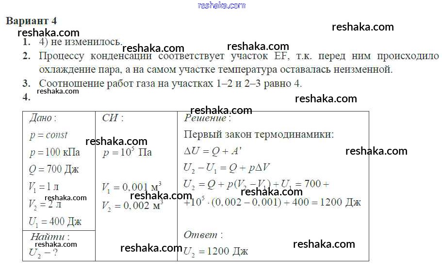 Решака - онлайн ответы Физика Ерюткин, Ерюткина за 10 класс Самостоятельные и контрольные работы Базовый и углубленный уровень ФГОС 2018 - 4