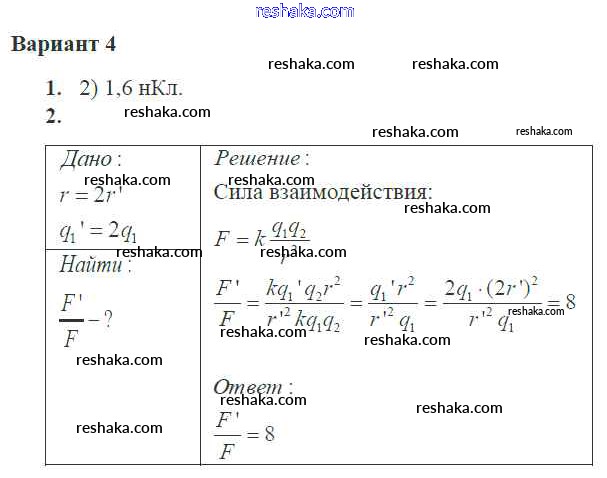 Решака - онлайн ответы Физика Ерюткин, Ерюткина за 10 класс Самостоятельные и контрольные работы Базовый и углубленный уровень ФГОС 2018 - 4
