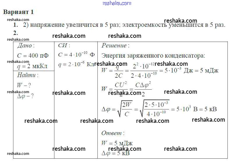 Решака - онлайн ответы Физика Ерюткин, Ерюткина за 10 класс Самостоятельные и контрольные работы Базовый и углубленный уровень ФГОС 2018 - 1