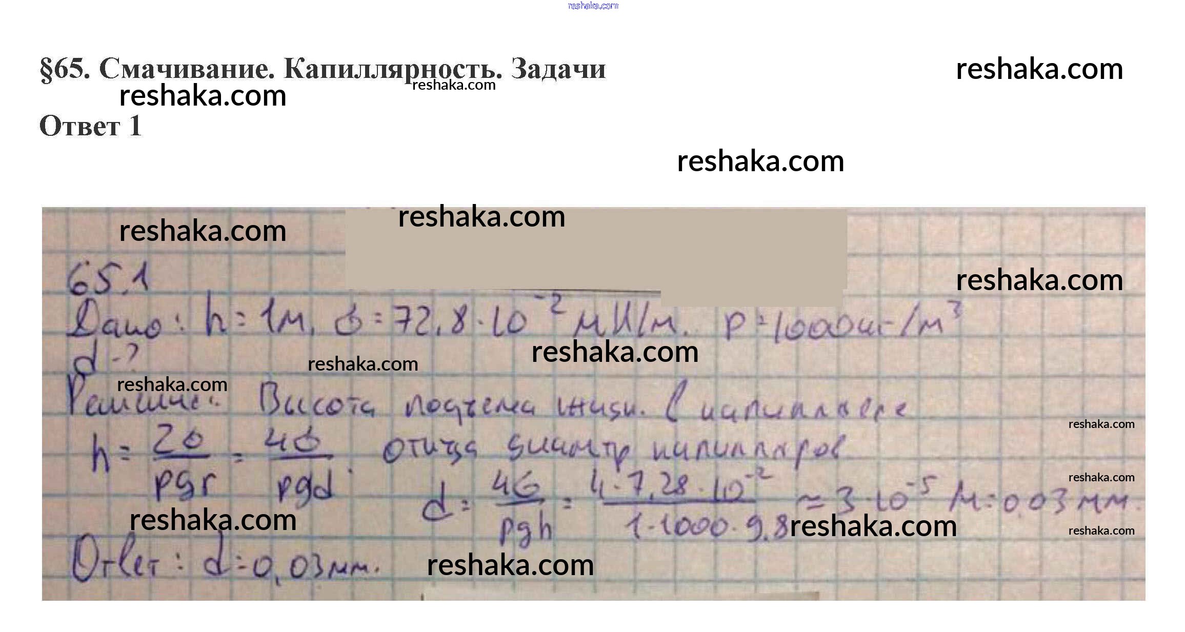 Представляем вам сборники по Физике, с готовыми ответами к Учебнику Касьянов школьной программы для учеников десятый класса. Это не просто гдз с ответом, а с подсказками, как верно решить 65. Смачивание. Капиллярность 10. Жидкость и пар 1. Проверяй домашку с умом и получай высший балл!