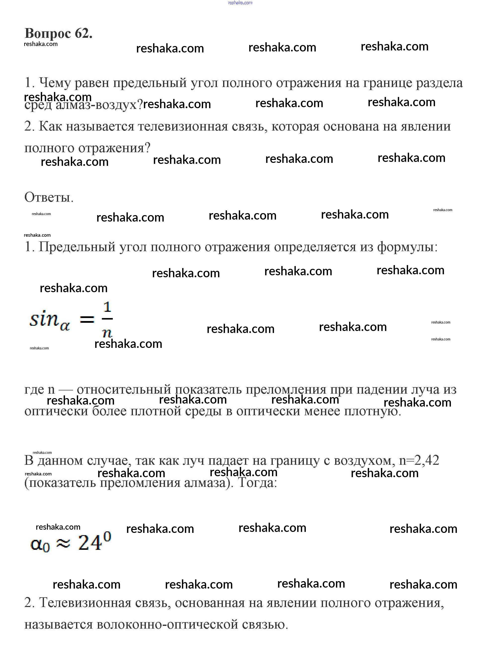 Представляем вам сборники по Физике, с готовыми ответами к Учебнику Мякишев школьной программы для учеников одиннадцатый класса. Это не просто гдз с ответом, а с подсказками, как верно решить Вопросы 62. Проверяй домашку с умом и получай высший балл!