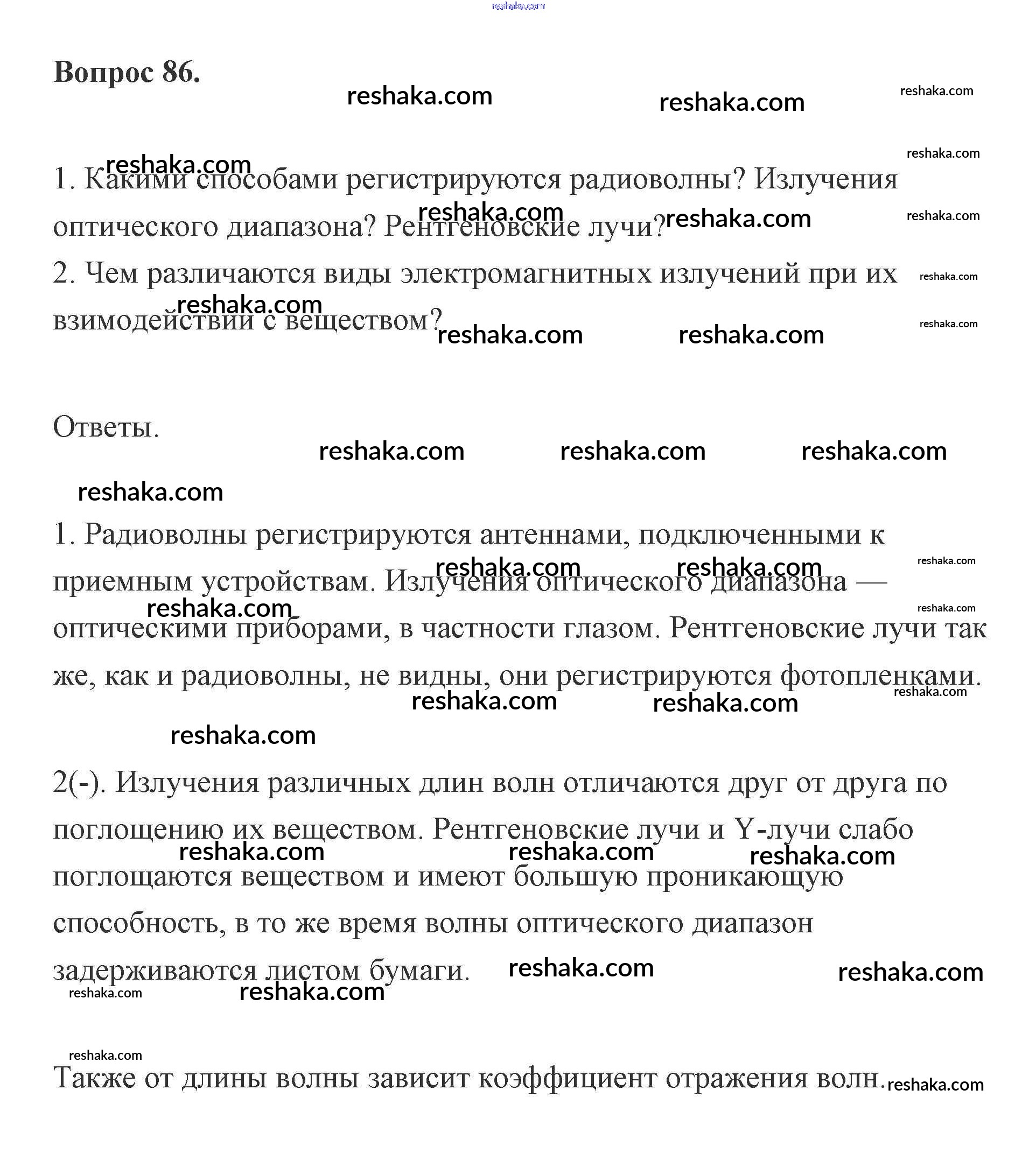 Представляем вам сборники по Физике, с готовыми ответами к Учебнику Мякишев школьной программы для учеников одиннадцатый класса. Это не просто гдз с ответом, а с подсказками, как верно решить Вопросы 86. Проверяй домашку с умом и получай высший балл!