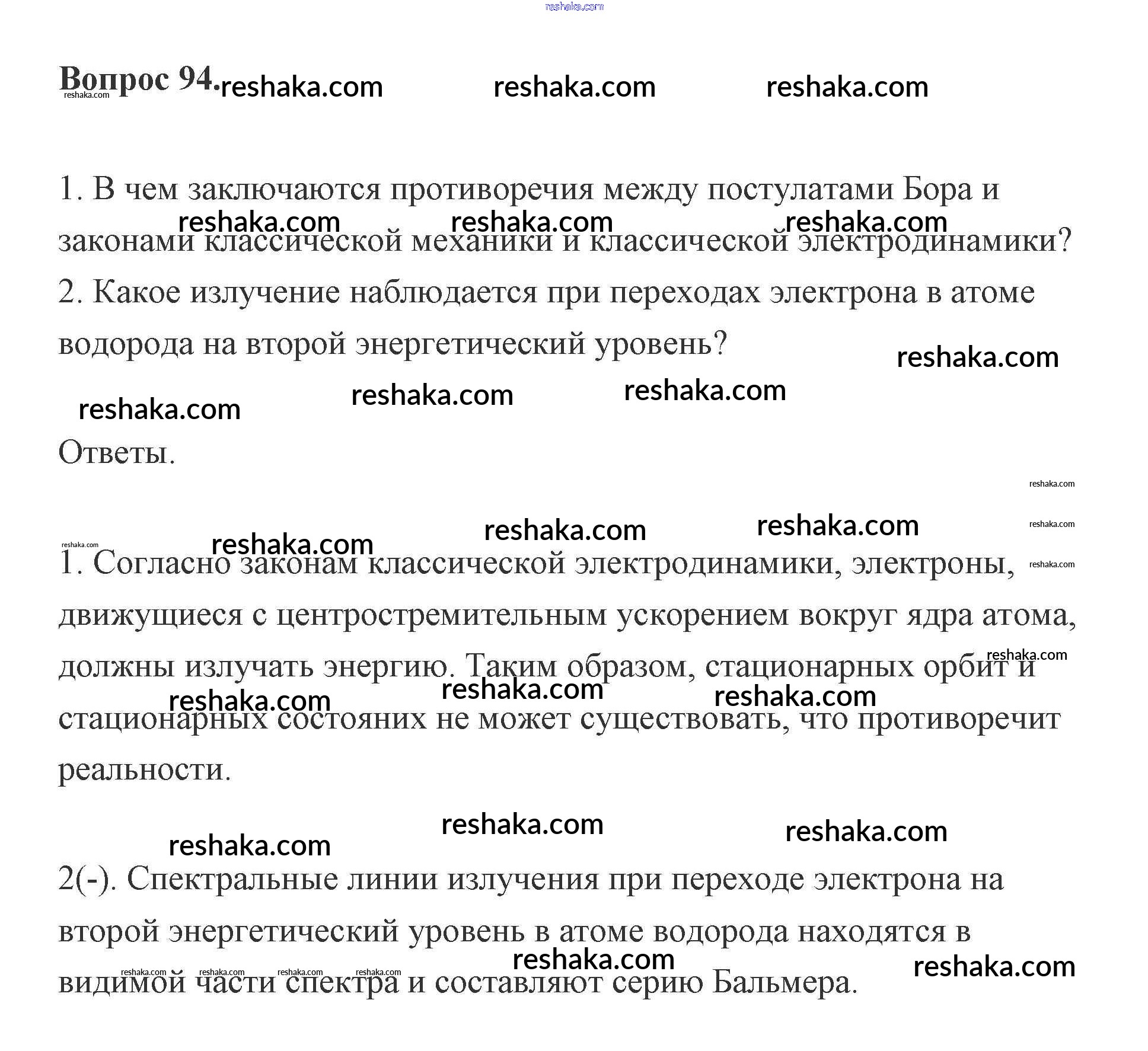 Представляем вам сборники по Физике, с готовыми ответами к Учебнику Мякишев школьной программы для учеников одиннадцатый класса. Это не просто гдз с ответом, а с подсказками, как верно решить Вопросы 94. Проверяй домашку с умом и получай высший балл!