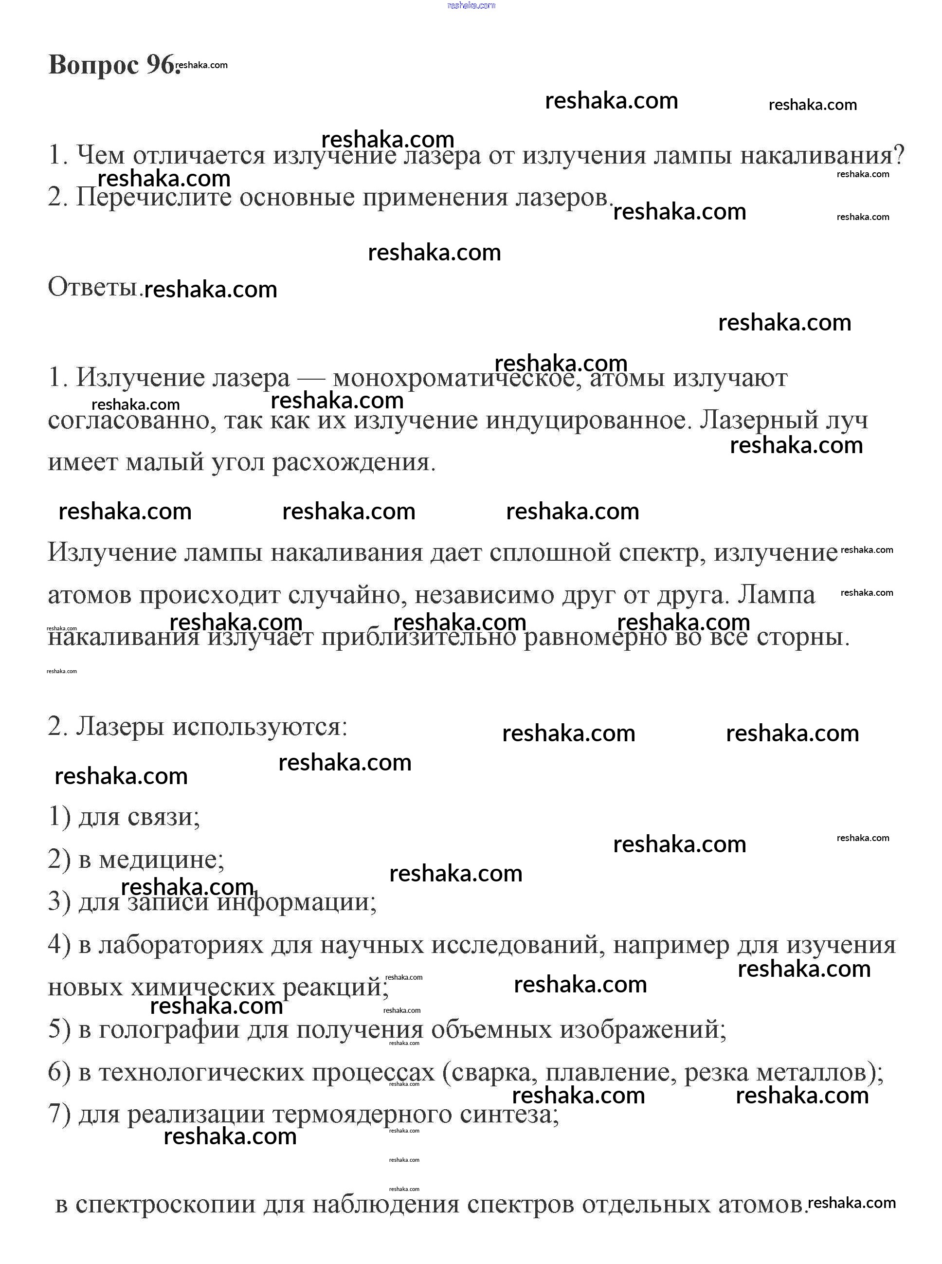 Представляем вам сборники по Физике, с готовыми ответами к Учебнику Мякишев школьной программы для учеников одиннадцатый класса. Это не просто гдз с ответом, а с подсказками, как верно решить Вопросы 96. Проверяй домашку с умом и получай высший балл!