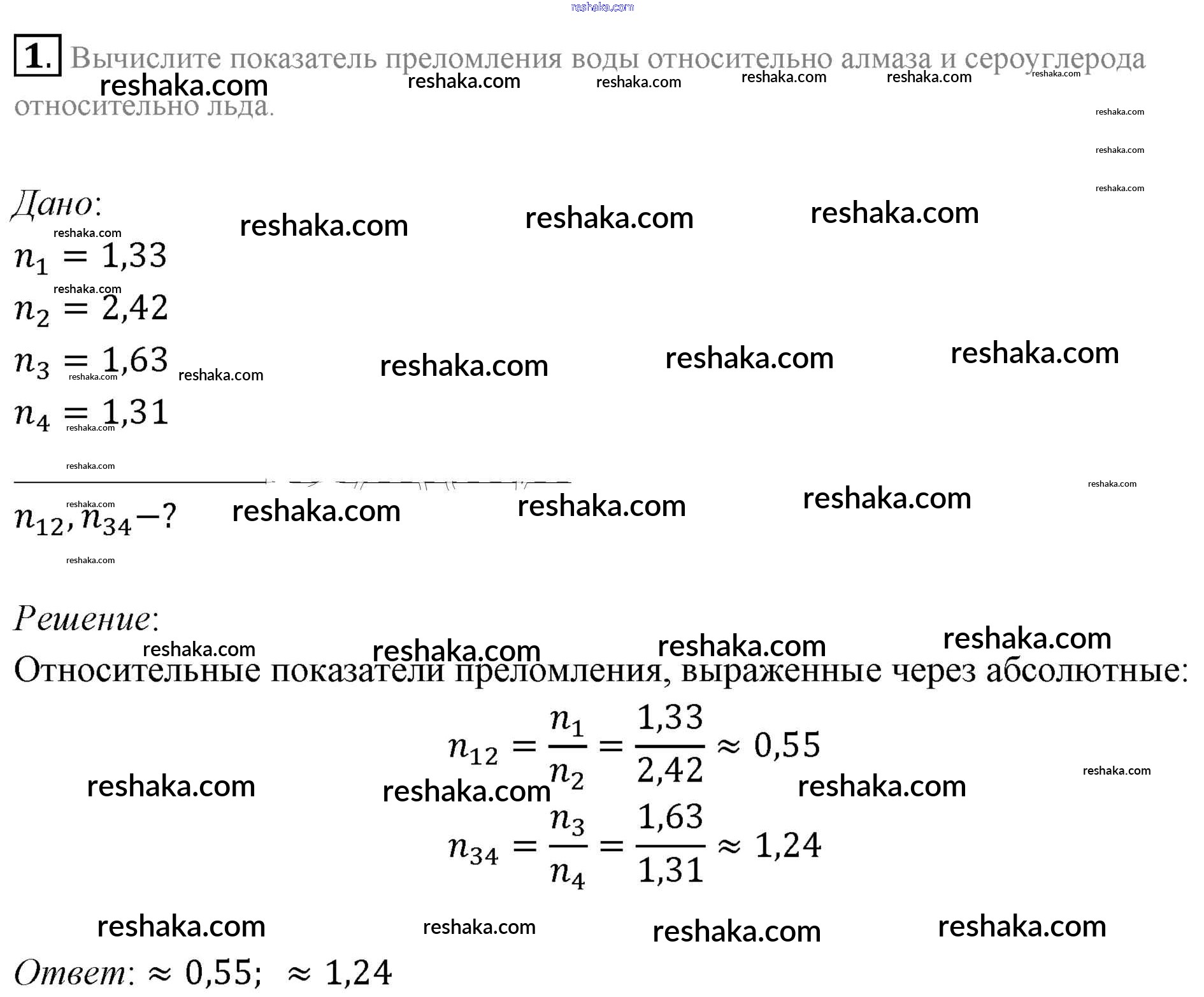 Представляем вам сборники по Физике, с готовыми ответами к Учебнику Мякишев школьной программы для учеников одиннадцатый класса. Это не просто гдз с ответом, а с подсказками, как верно решить Задачи для самостоятельного решения §49. Примеры решения задач по теме «Закон преломления света. Полное отражение света» 1. Проверяй домашку с умом и получай высший балл!
