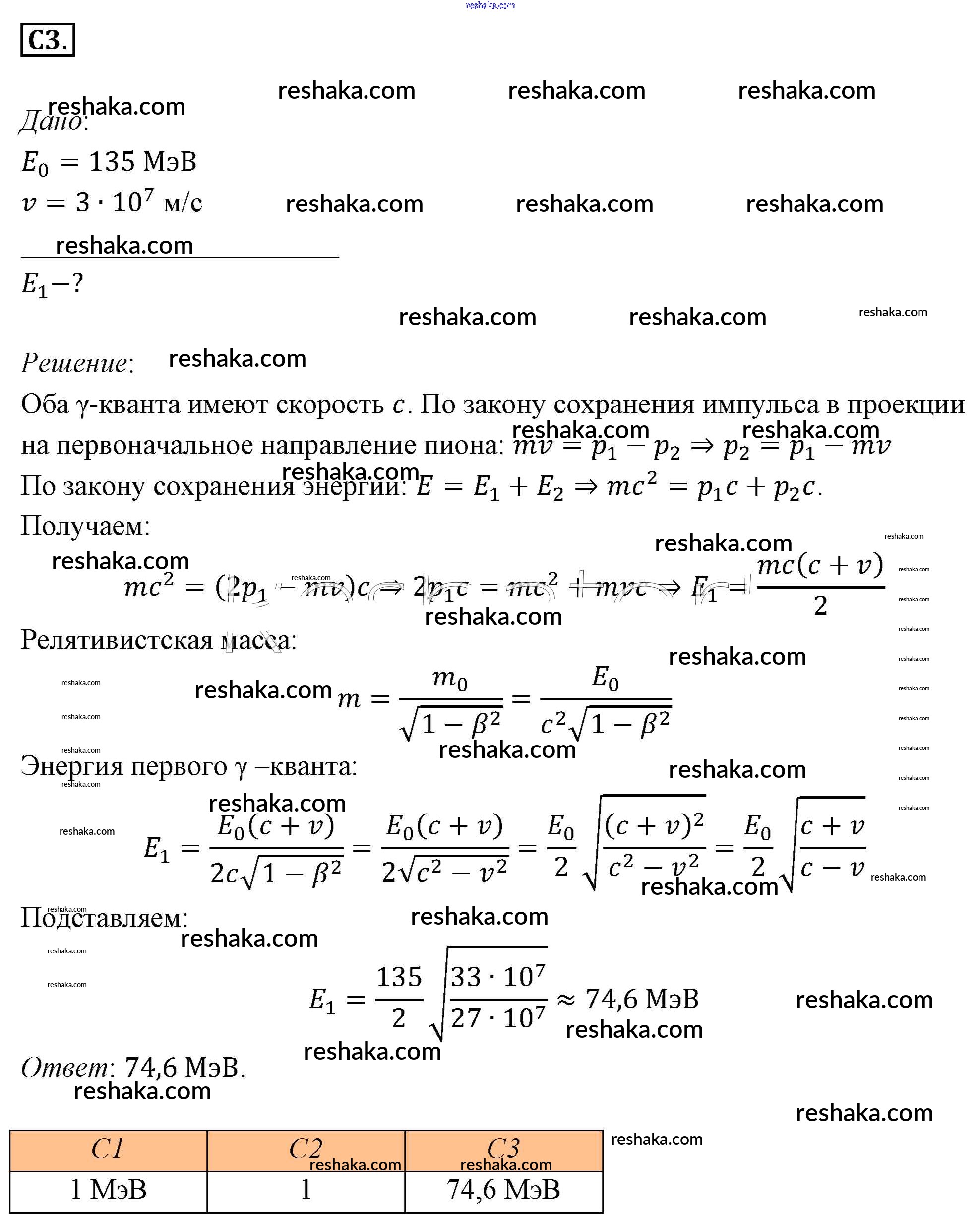 Представляем вам сборники по Физике, с готовыми ответами к Учебнику Мякишев школьной программы для учеников одиннадцатый класса. Это не просто гдз с ответом, а с подсказками, как верно решить Задания ЕГЭ §65. Примеры решения задач по теме «Элементы специальной теории относительности» 3. Проверяй домашку с умом и получай высший балл!