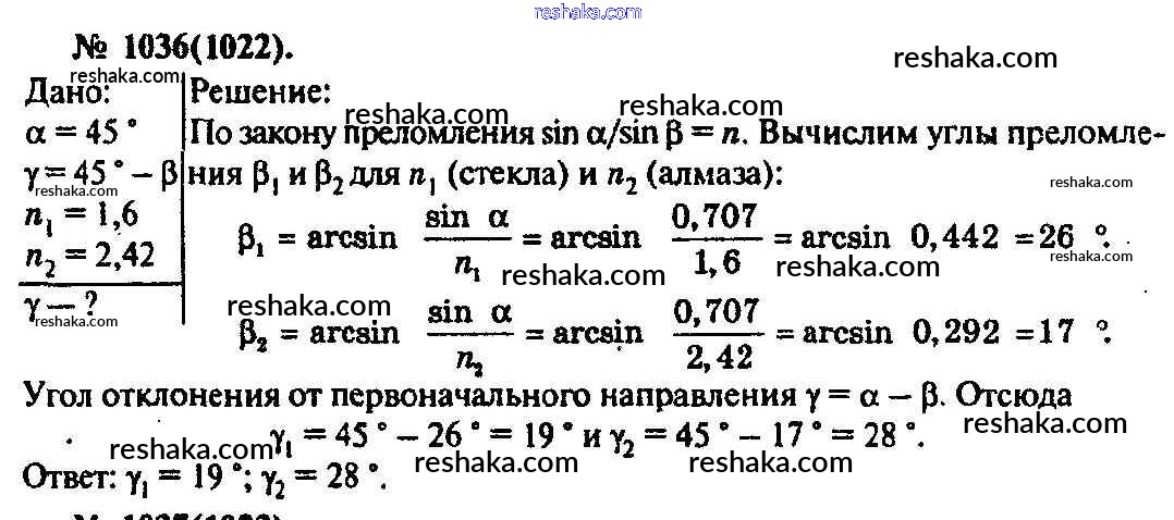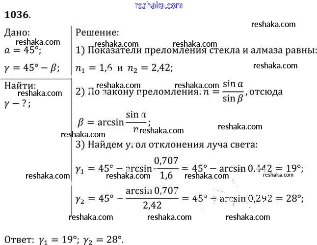 Решака - онлайн ответы Физика Рымкевич за 10-11 класс Задачник ФГОС 2013 - 1036