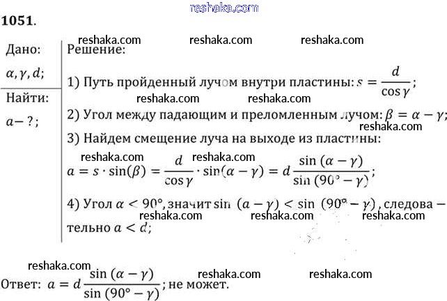Решака - онлайн ответы Физика Рымкевич за 10-11 класс Задачник ФГОС 2013 - 1051