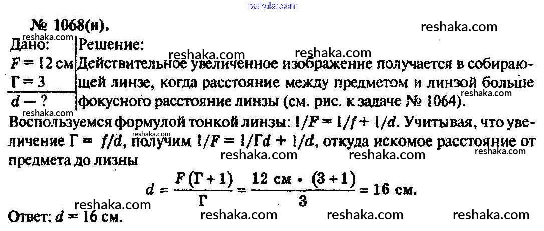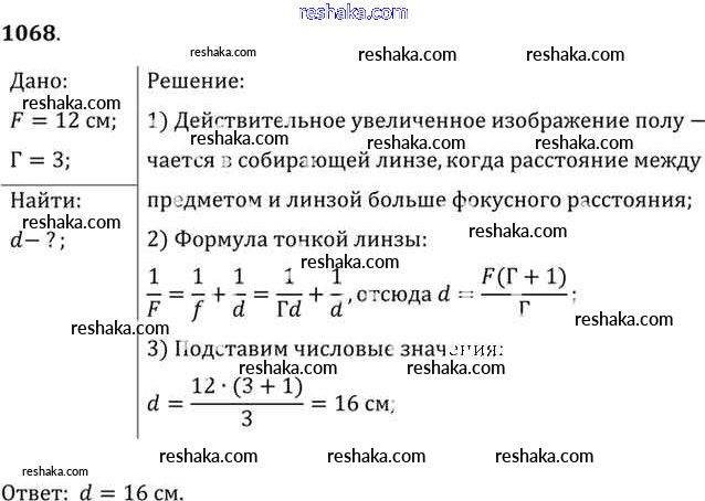 Решака - онлайн ответы Физика Рымкевич за 10-11 класс Задачник ФГОС 2013 - 1068