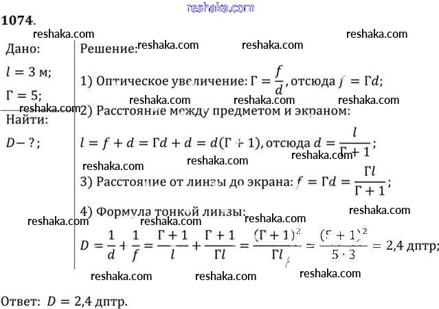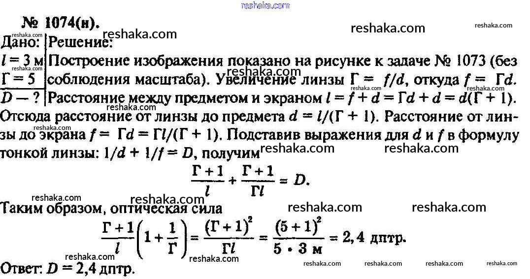 Решака - онлайн ответы Физика Рымкевич за 10-11 класс Задачник ФГОС 2013 - 1074