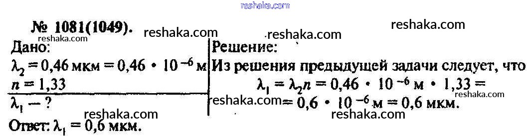 Решака - онлайн ответы Физика Рымкевич за 10-11 класс Задачник ФГОС 2013 - 1081