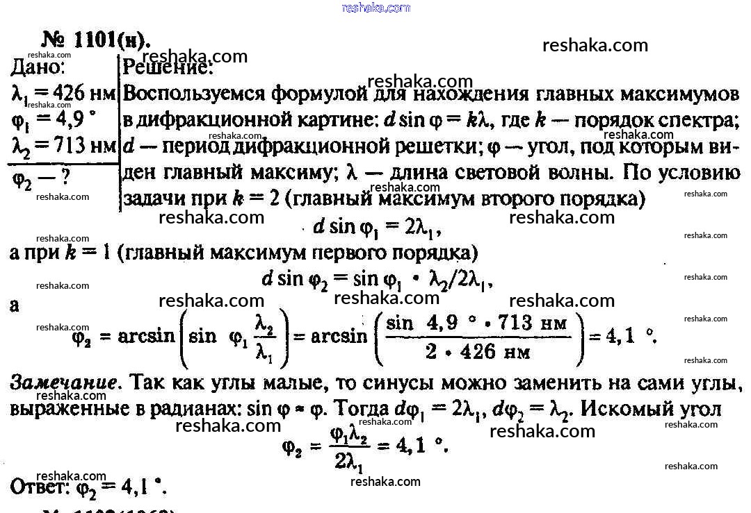 Решака - онлайн ответы Физика Рымкевич за 10-11 класс Задачник ФГОС 2013 - 1101