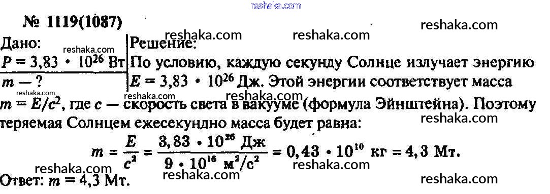 Решака - онлайн ответы Физика Рымкевич за 10-11 класс Задачник ФГОС 2013 - 1119