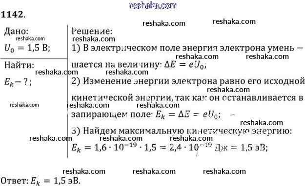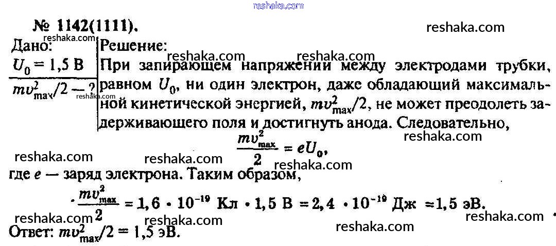 Решака - онлайн ответы Физика Рымкевич за 10-11 класс Задачник ФГОС 2013 - 1142