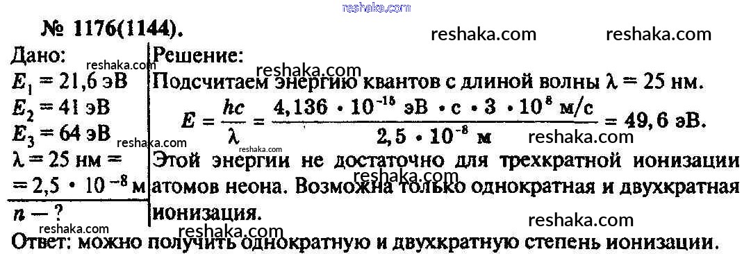 Решака - онлайн ответы Физика Рымкевич за 10-11 класс Задачник ФГОС 2013 - 1176