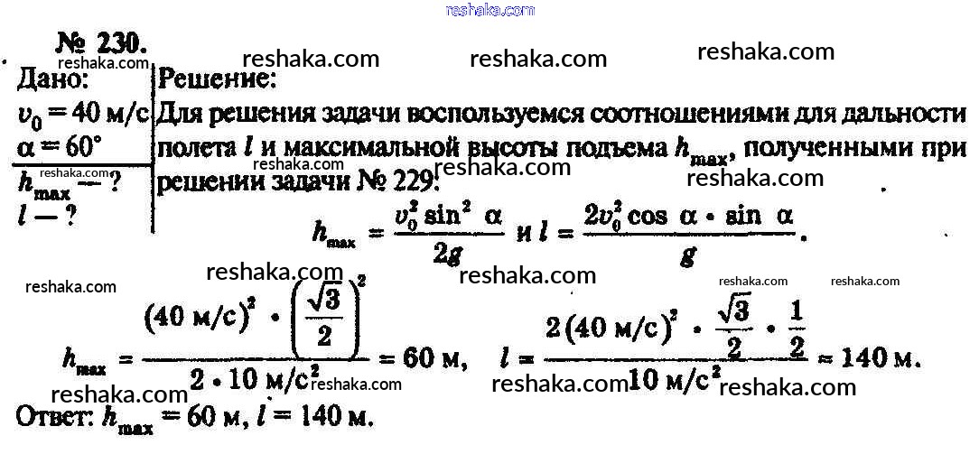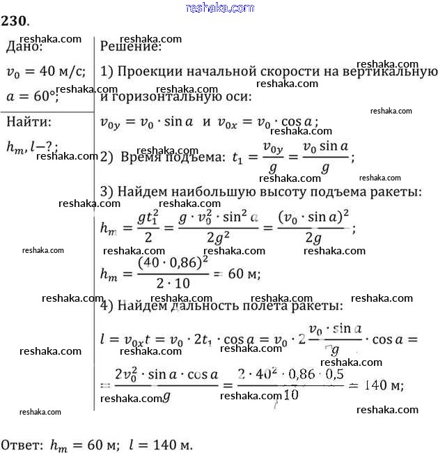 Решака - онлайн ответы Физика Рымкевич за 10-11 класс Задачник ФГОС 2013 - 230