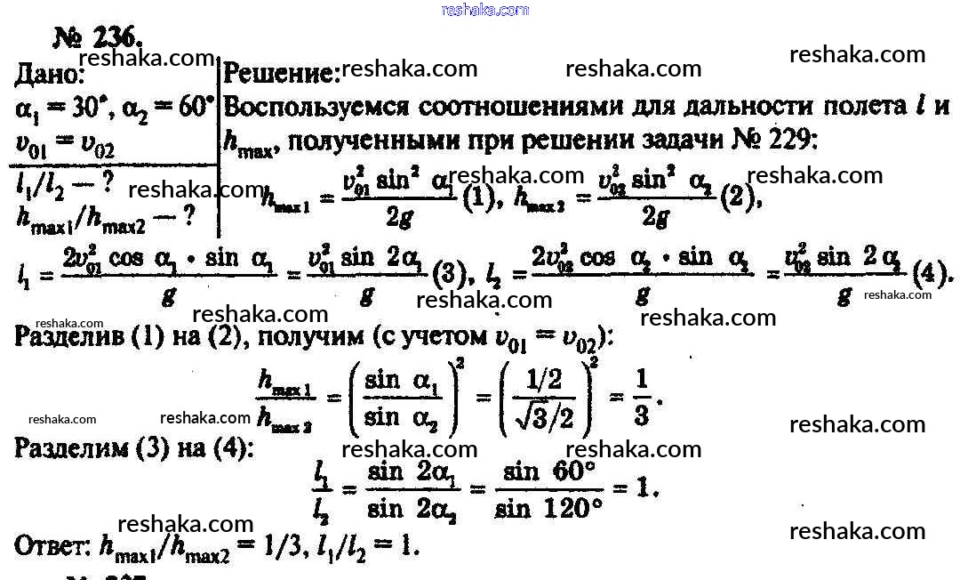 Представляем вам сборники по Физике, с готовыми ответами к Задачнику Рымкевич школьной программы для учеников десятый-одиннадцатый класса. Это не просто гдз с ответом, а с подсказками, как верно решить Задачи  236. Проверяй домашку с умом и получай высший балл!