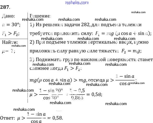 Решака - онлайн ответы Физика Рымкевич за 10-11 класс Задачник ФГОС 2013 - 287