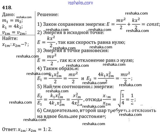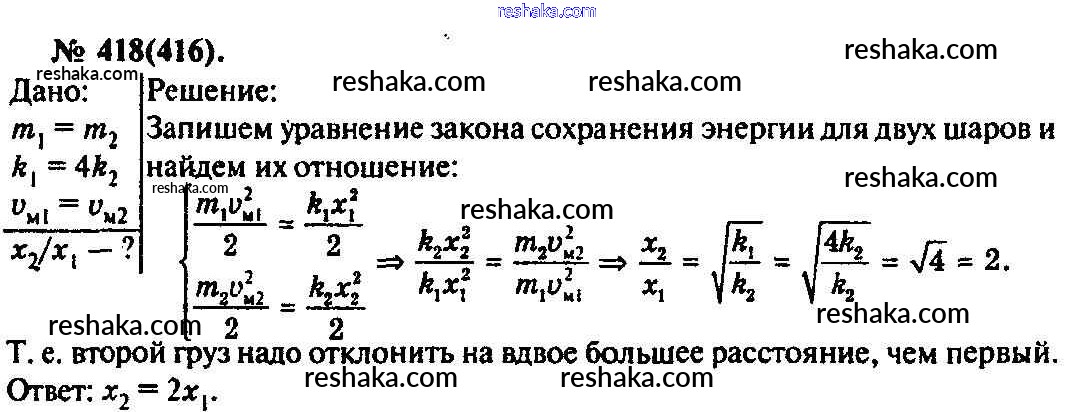 Решака - онлайн ответы Физика Рымкевич за 10-11 класс Задачник ФГОС 2013 - 418