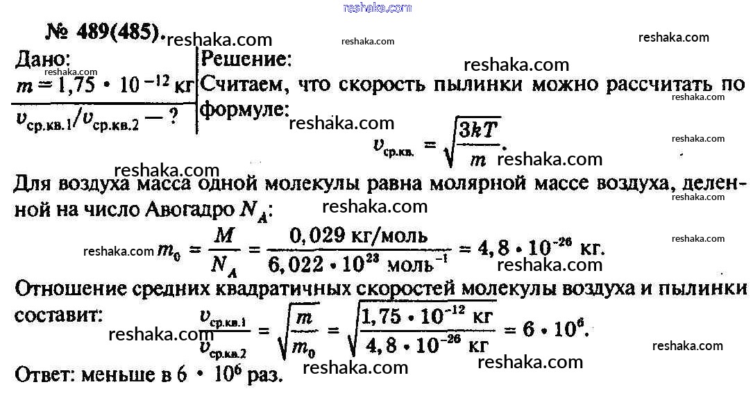 Решака - онлайн ответы Физика Рымкевич за 10-11 класс Задачник ФГОС 2013 - 489