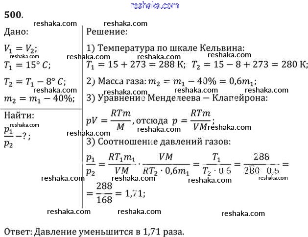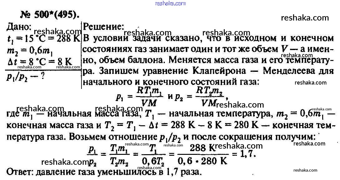 Решака - онлайн ответы Физика Рымкевич за 10-11 класс Задачник ФГОС 2013 - 500