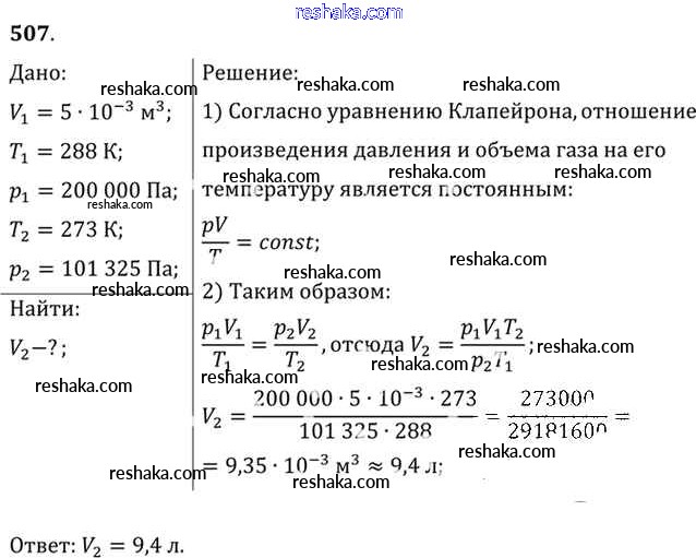 Решака - онлайн ответы Физика Рымкевич за 10-11 класс Задачник ФГОС 2013 - 507
