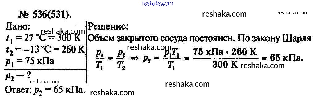 Решака - онлайн ответы Физика Рымкевич за 10-11 класс Задачник ФГОС 2013 - 536