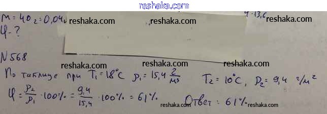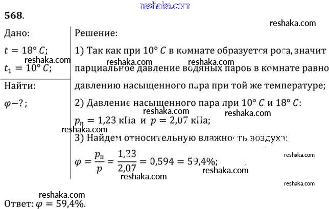 Решака - онлайн ответы Физика Рымкевич за 10-11 класс Задачник ФГОС 2013 - 568