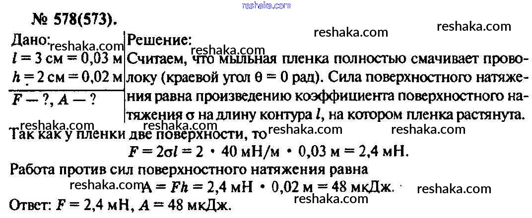 Решака - онлайн ответы Физика Рымкевич за 10-11 класс Задачник ФГОС 2013 - 578