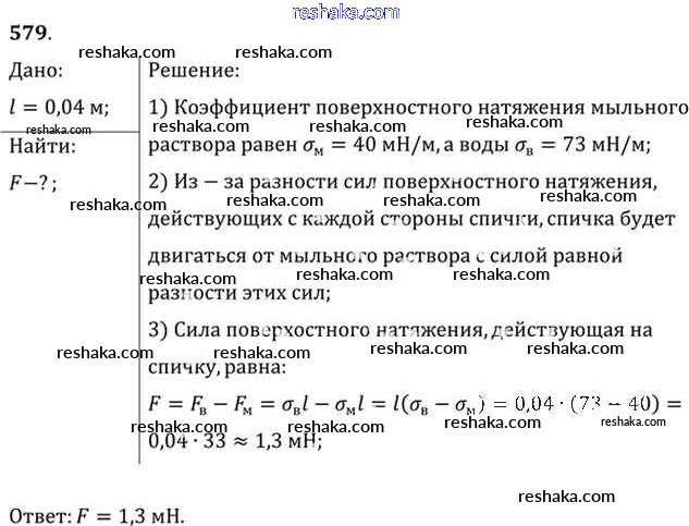 Решака - онлайн ответы Физика Рымкевич за 10-11 класс Задачник ФГОС 2013 - 579