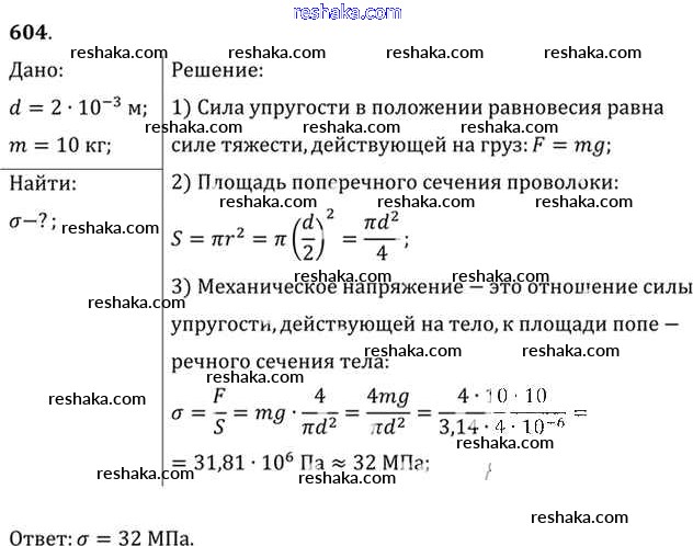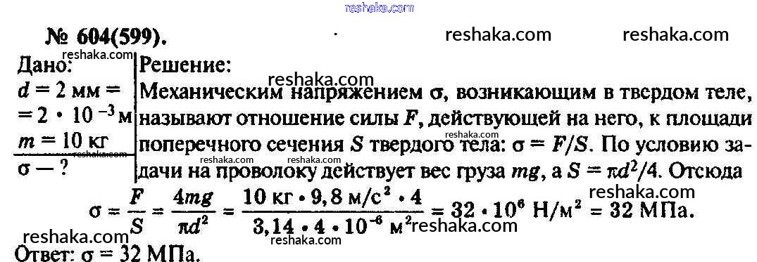 Решака - онлайн ответы Физика Рымкевич за 10-11 класс Задачник ФГОС 2013 - 604