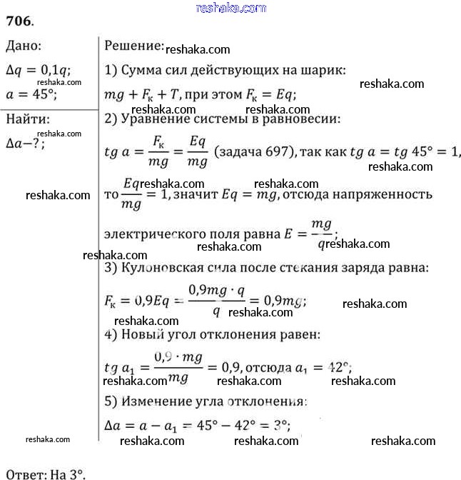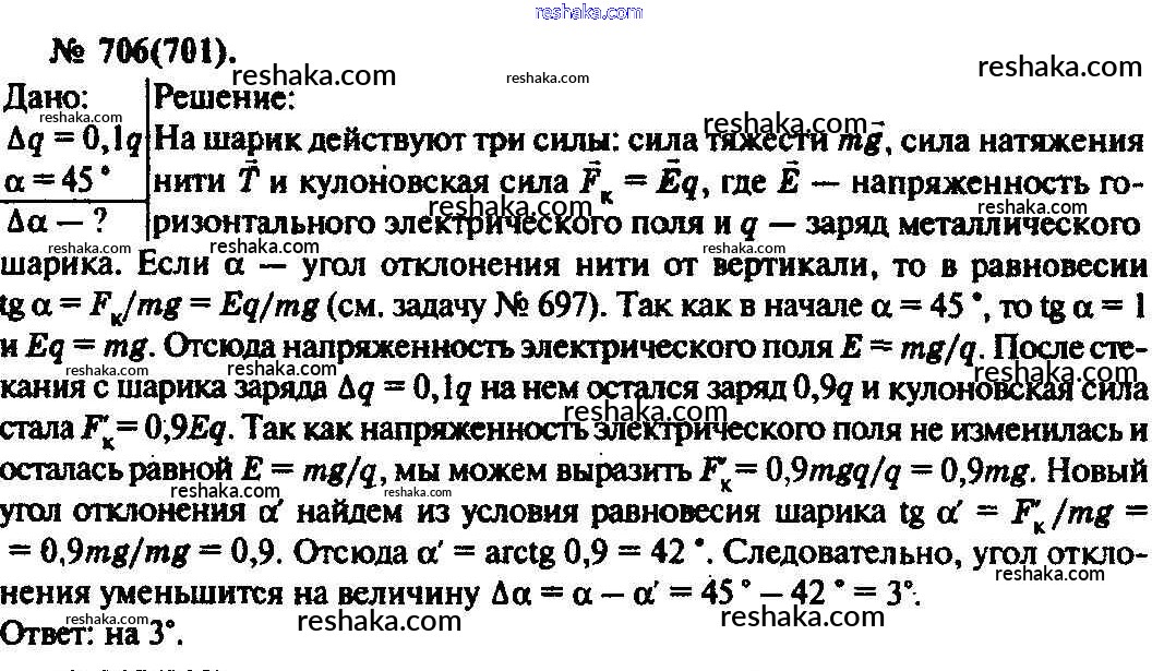 Решака - онлайн ответы Физика Рымкевич за 10-11 класс Задачник ФГОС 2013 - 706