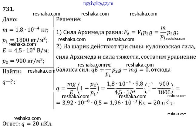 Решака - онлайн ответы Физика Рымкевич за 10-11 класс Задачник ФГОС 2013 - 731