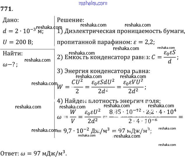 Решака - онлайн ответы Физика Рымкевич за 10-11 класс Задачник ФГОС 2013 - 771