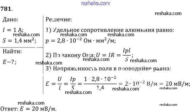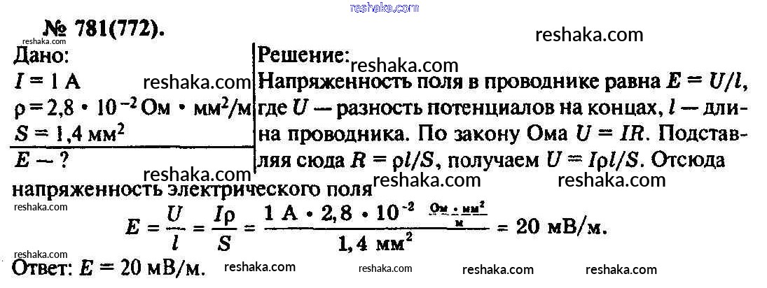 Решака - онлайн ответы Физика Рымкевич за 10-11 класс Задачник ФГОС 2013 - 781