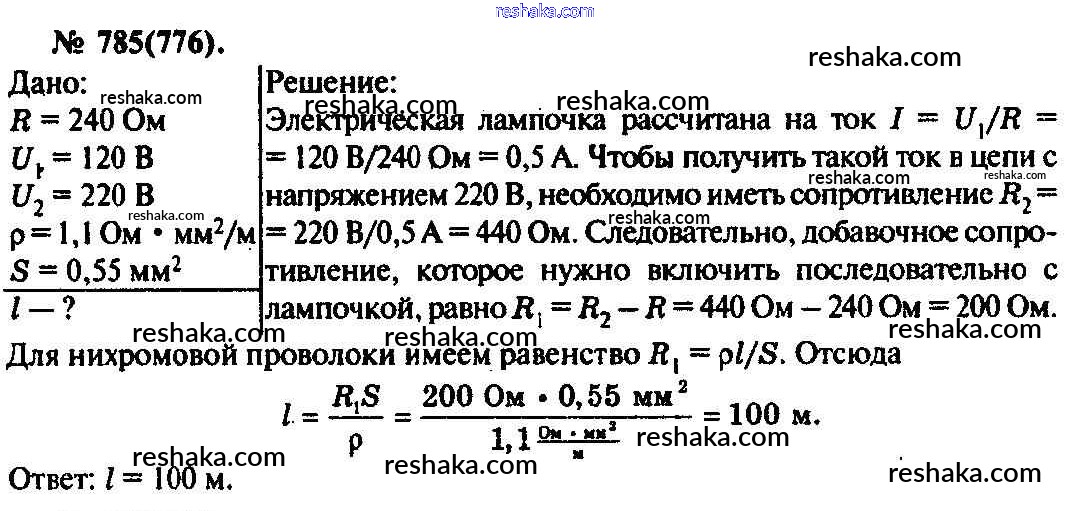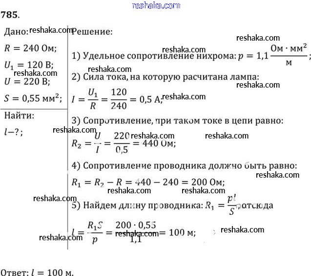 Решака - онлайн ответы Физика Рымкевич за 10-11 класс Задачник ФГОС 2013 - 785