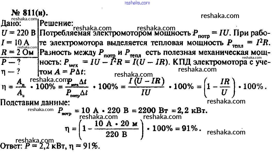 Решака - онлайн ответы Физика Рымкевич за 10-11 класс Задачник ФГОС 2013 - 811