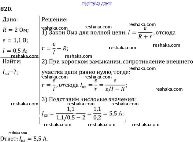 Решака - онлайн ответы Физика Рымкевич за 10-11 класс Задачник ФГОС 2013 - 820
