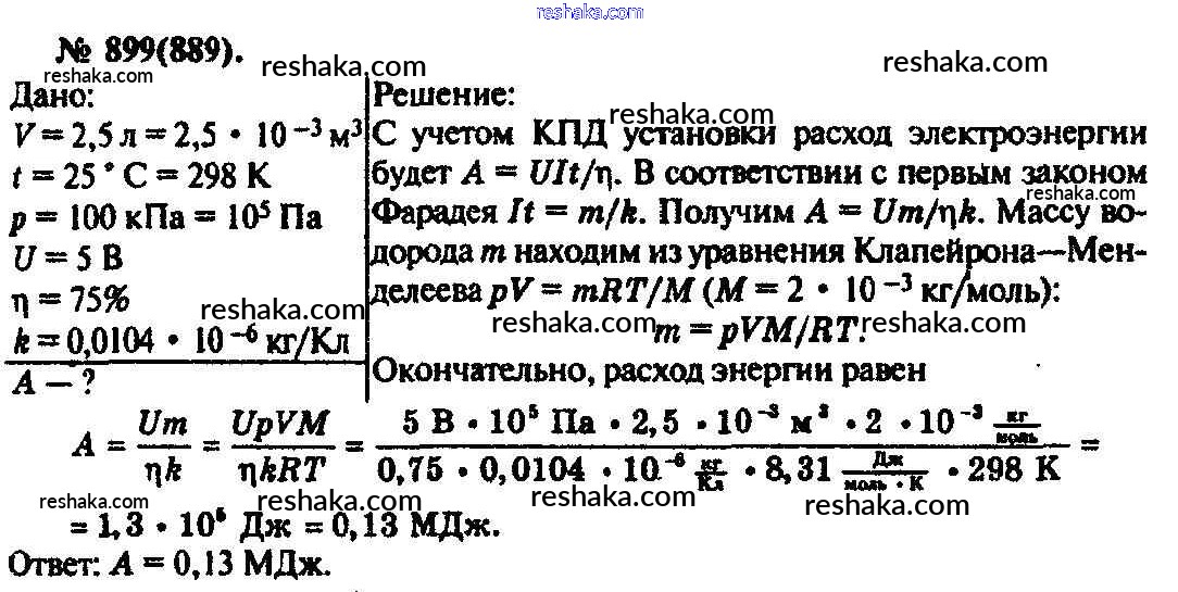 Решака - онлайн ответы Физика Рымкевич за 10-11 класс Задачник ФГОС 2013 - 899