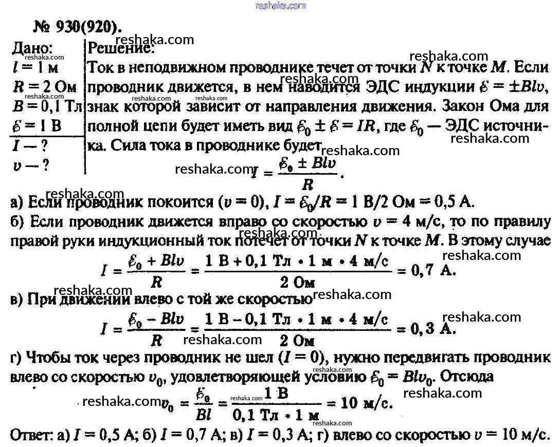 Решака - онлайн ответы Физика Рымкевич за 10-11 класс Задачник ФГОС 2013 - 930