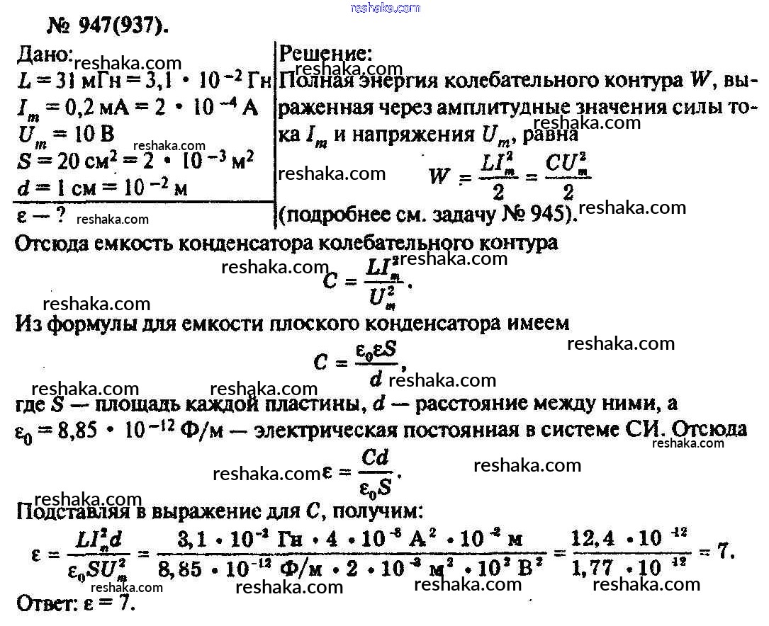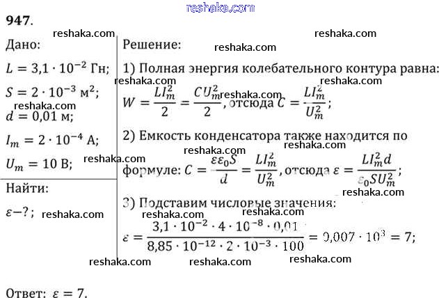 Решака - онлайн ответы Физика Рымкевич за 10-11 класс Задачник ФГОС 2013 - 947