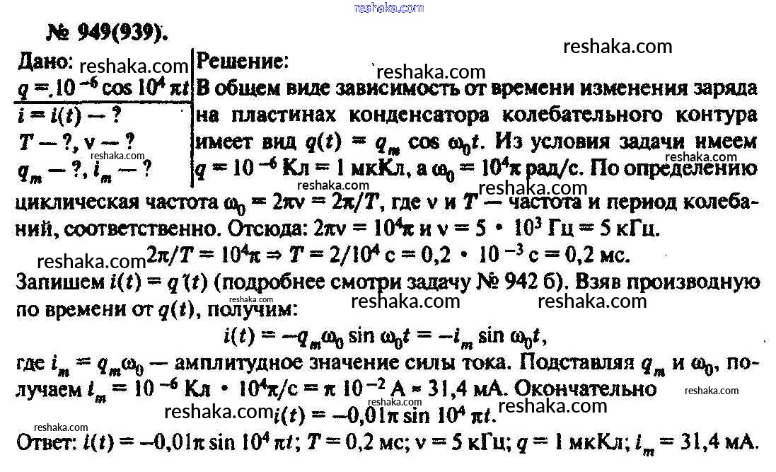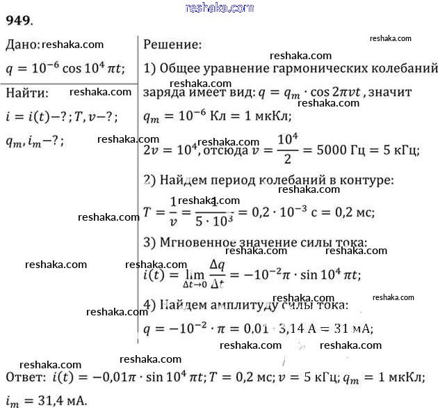Решака - онлайн ответы Физика Рымкевич за 10-11 класс Задачник ФГОС 2013 - 949
