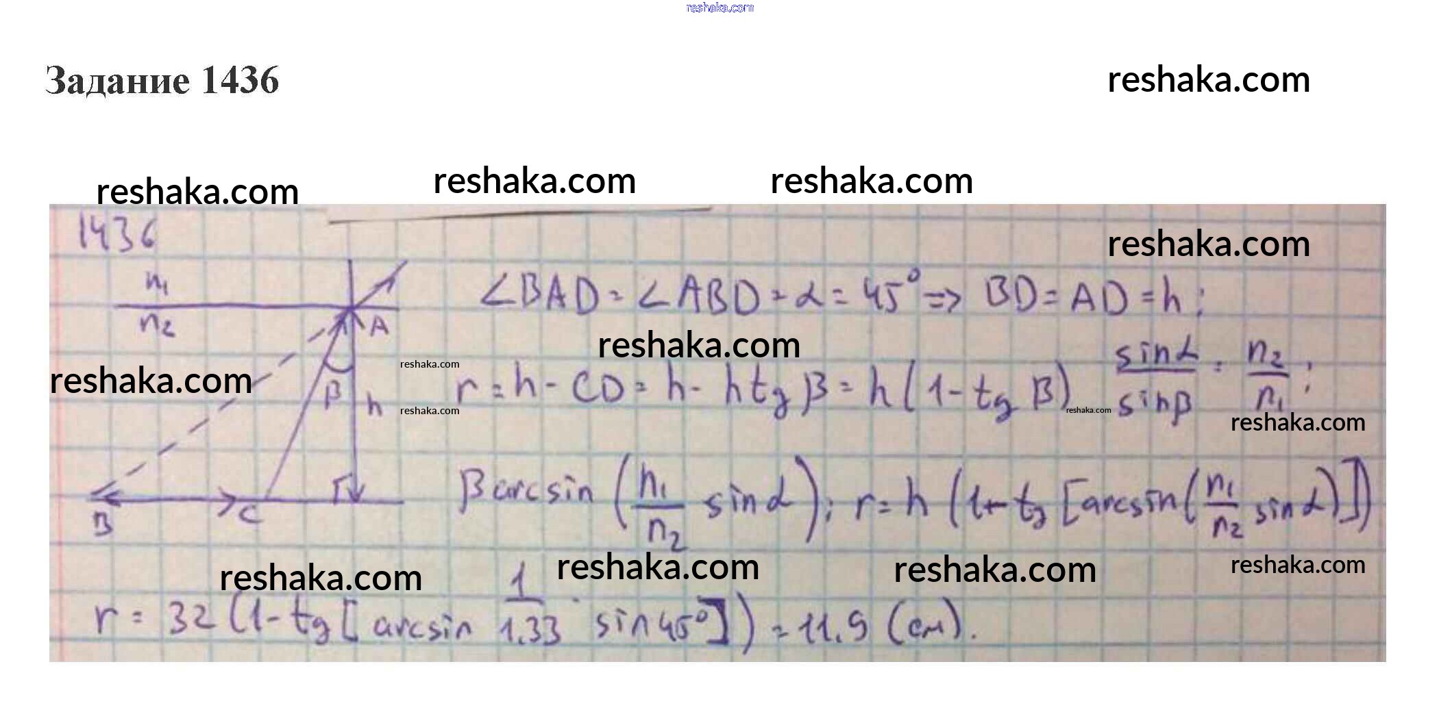 геометрическая оптика / 59. преломление света. закон преломления. полное отражение / 1436