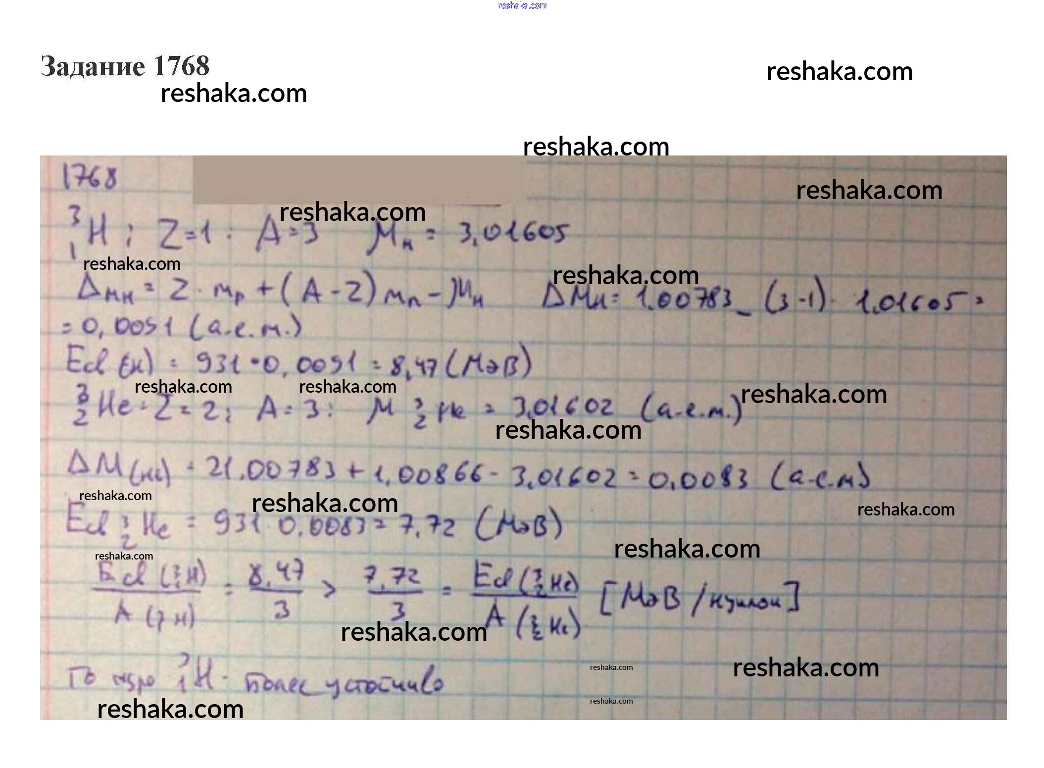 Представляем вам сборники по Физике, с готовыми ответами к Сборнику задач Степанова школьной программы для учеников десятый-одиннадцатый класса. Это не просто гдз с ответом, а с подсказками, как верно решить 72. Энергия связи ядер. Ядерные реакции Тема "Атомная физика" 1768. Проверяй домашку с умом и получай высший балл!
