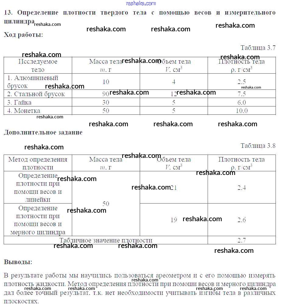 Решака - онлайн ответы Физика Белага, Воронцова за 7 класс Тетрадь-практикум ФГОС 2012 - №13. Определение плотности твердого тела с помощью весов и измерительного цилиндра