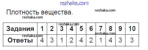Решака - онлайн ответы Физика Чеботарева за 7 класс Тесты ФГОС 2017 - Плотность вещества